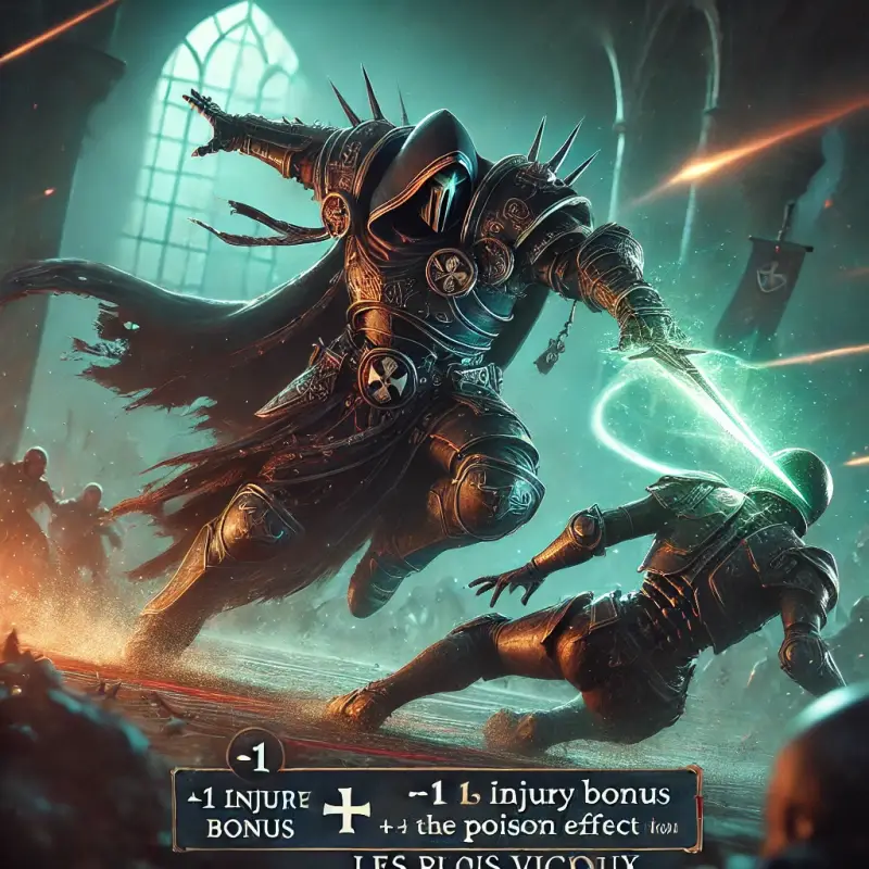 Enfin les attaques du joueur sont empoisonnées (voir Attaque empoisonnée) mais seulement sur un résultat de 6/1D6.