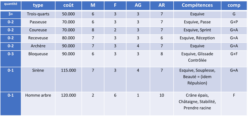 La connaissance des lieux alliée à une parfaite maîtrise du terrain permet aux Amazones d’esquiver avec un bonus de +1, pour tout le match.