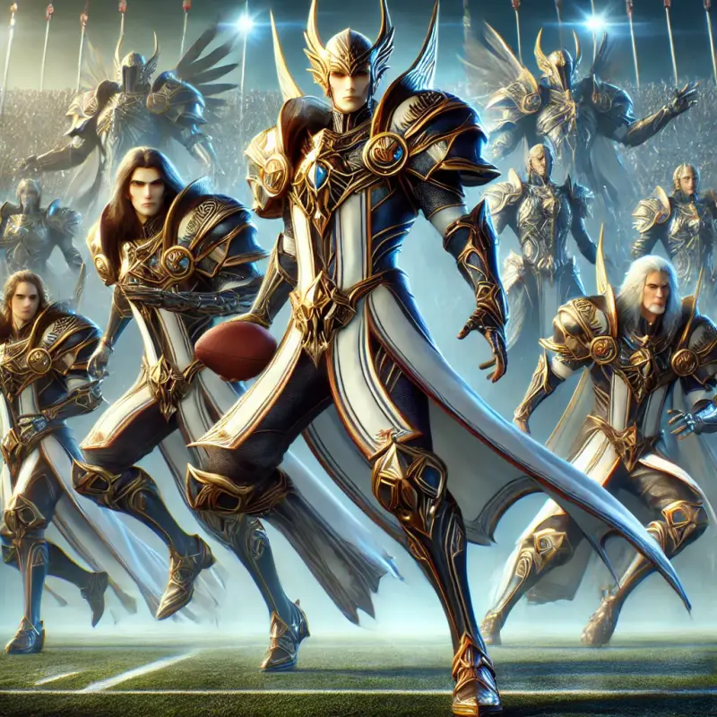 Un champion de la liste des Haut-elfes entre en jeu au début de n’importe qu’elle mise en jeu, sur un résultat de 4+/1D6, et cela jusqu’à la fin de la mi-temps. Il pourra marquer des XPs et pourra donc être acheté avec ces modifications. En jeu, il subit les effets des blessures comme n’importe qu’elle autre joueur.