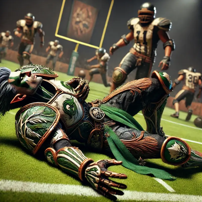 - Sur un résultat de 4 à 6, le joueur réussit à se relever, mais ne peut pas se déplacer davantage à moins qu'il ne "mette le paquet". Cependant, même s'il se relève, il ne peut pas effectuer un blitz.